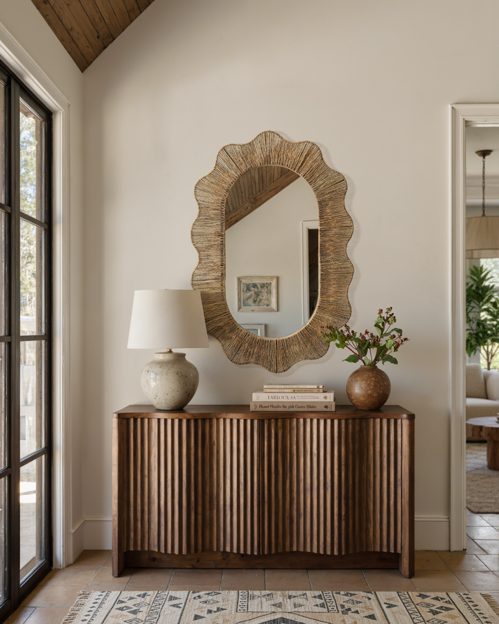 - Vintage-Inspired Sophistication: The fluted wave design evokes antique European mirrors while the natural fiber brings contemporary warmth—creating instant heirloom appeal